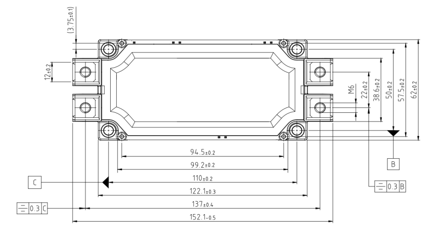 EconoDUAL-3封裝,扁平設(shè)計,散熱面積更大,承載更大的電流